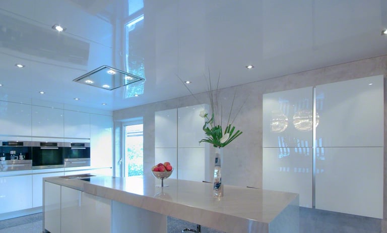 Prszykłady lustrszanych ,błyszczących sufitów napinanych