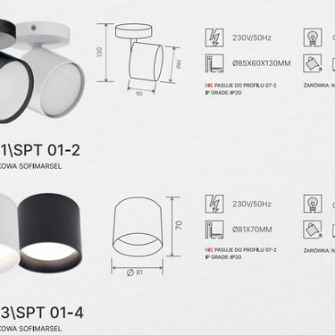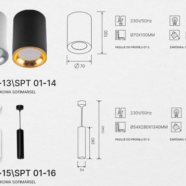 Spoty to punktowe źródła światła, idealne do precyzyjnego oświetlenia określonych stref, takich jak kącik wypoczynkowy czy miejsce pracy.Lampy wiszące i żyrandole
