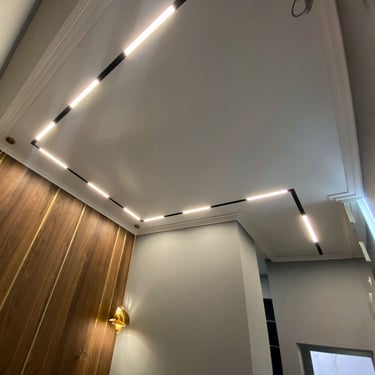 Jedną z największych zalet sufitów napinanych jest możliwość integracji z oświetleniem. W przedpokojach popularne są listwy LED, które subtelnie podświetlają krawędzie sufitu. Dla bardziej spektakularnego efektu można wybrać "gwiaździste niebo" lub kolorowe światło RGB, które zmienia nastrój wnętrza.
