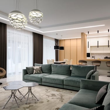 Dwupoziomowe sufity wprowadzają do salonu nowoczesną dynamikę. Połączenie różnych kolorów i faktur pozwala uzyskać harmonijny lub kontrastowy efekt, idealnie dopasowany do wnętrza.